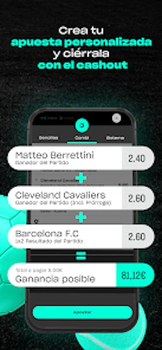 Además, las cuotas no son muy generosas, ni el número de mercados por evento demasiado alto, En el lado positivo, ofrece Cash Out y crear Apuesta (esta última función bastante amplia).